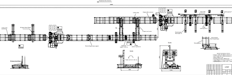 تحتوي خطوط لحام الشعاع على 3-H على أنها وظيفة مشتركة من شعاع H ، وتجميع الشعاع T ، واللحام والتشوه الحافة بعد اللحام. وبالتالي ، يمكن أن يدرك بدقة وسريعة إنتاج H Beam و T Beam.